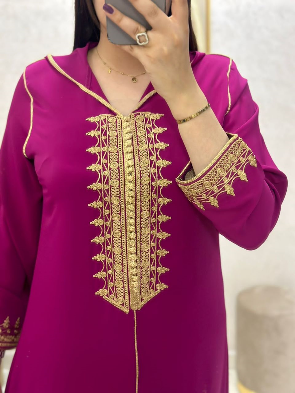نوع الثوب : كريب كوريا مرصعة بالطرز الكوردون عين و عقدة المقاسات